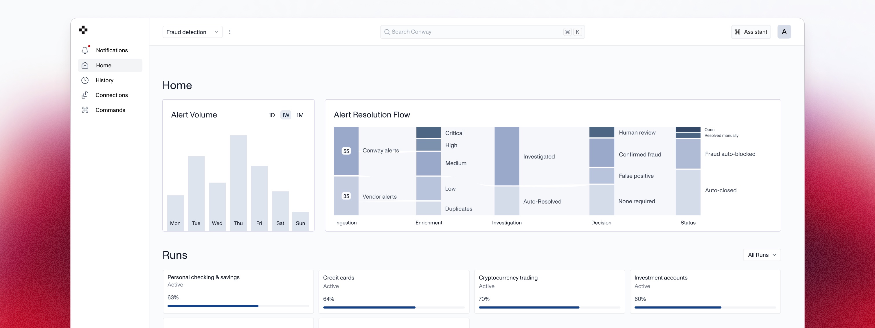 Modern teams use Conway to automate operations from detection to decision. We drive end-to-end outcomes across mission-critical processes, including fraud and AML, content moderation, and IT operations.